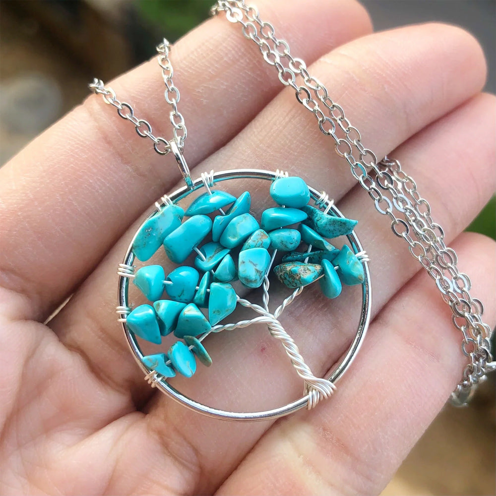 3To5mm Amethyst Gemstone Tree Of Pendant With Chain Necklace Wire Wrapped Set 925 Sterling Silver Silver Anniversary Gift's Women or Men Jewelry For Her