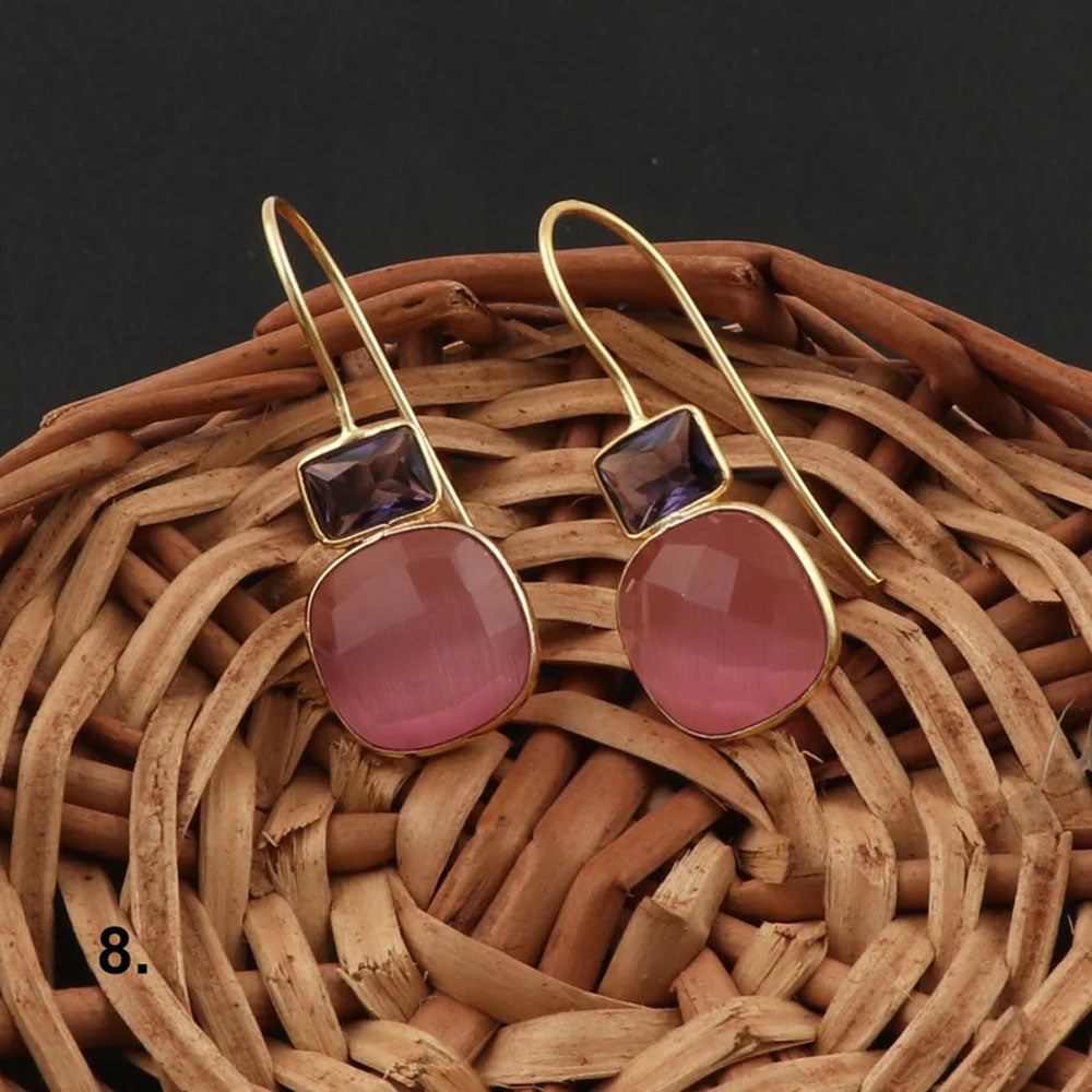 8MM or 4X6MM Garnet Aquamarine Faceted Gemstone Rectangle Cushion Shape Dangle Pair Earring Handmade Sterling Silver Earring For Women Girl Jewelry