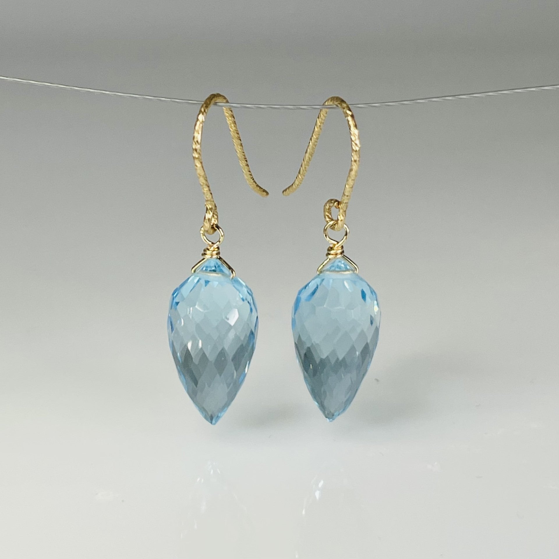 925 Sterling Silver Gold Plated Dangle Pair Earrings Handmade Blue Topaz Hydro Gemstone Size 8X12MM teardrop Shape Earring