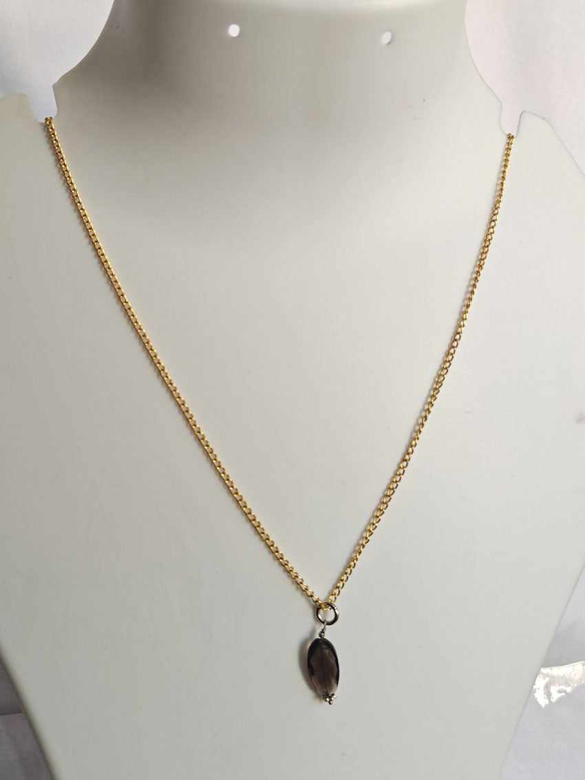 925 Sterling Silver Gold Plated Necklace 10MM Oval Shape Smoky Quartz Cut Gemstone Drilled Set Necklace Anniversary Gift For Women Necklace