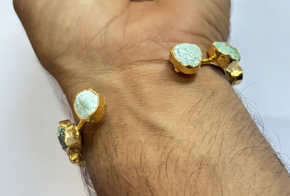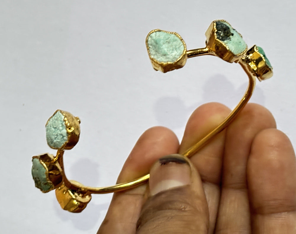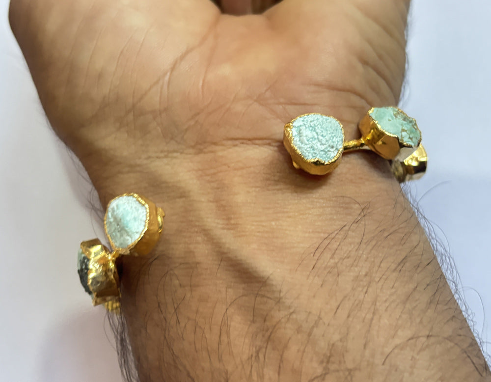 Adjustable Bangles 8To10mm Natural Raw Turquoise Beads Gems Handmade Drilled Set Fashion Bangles For Happy Birthday Gift's