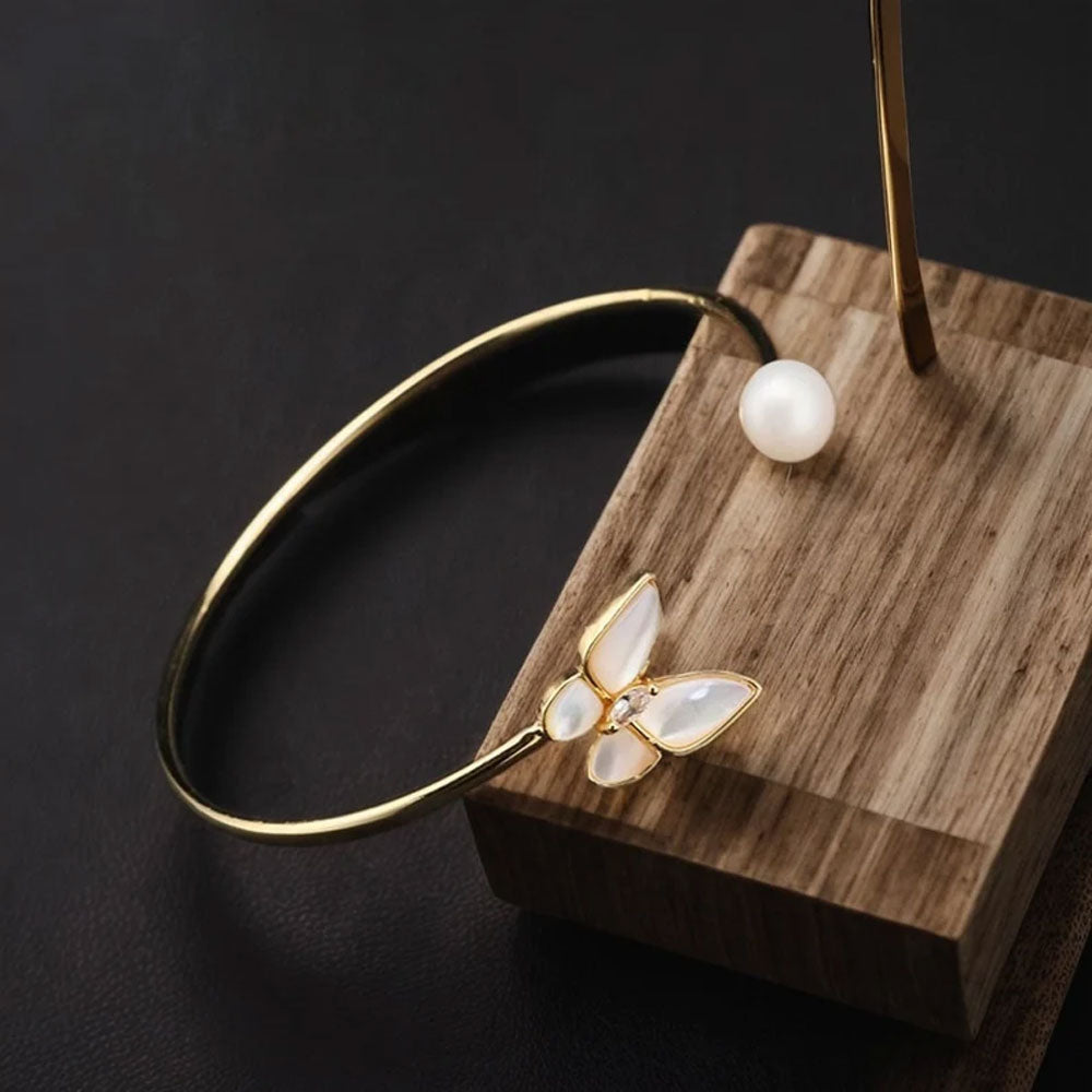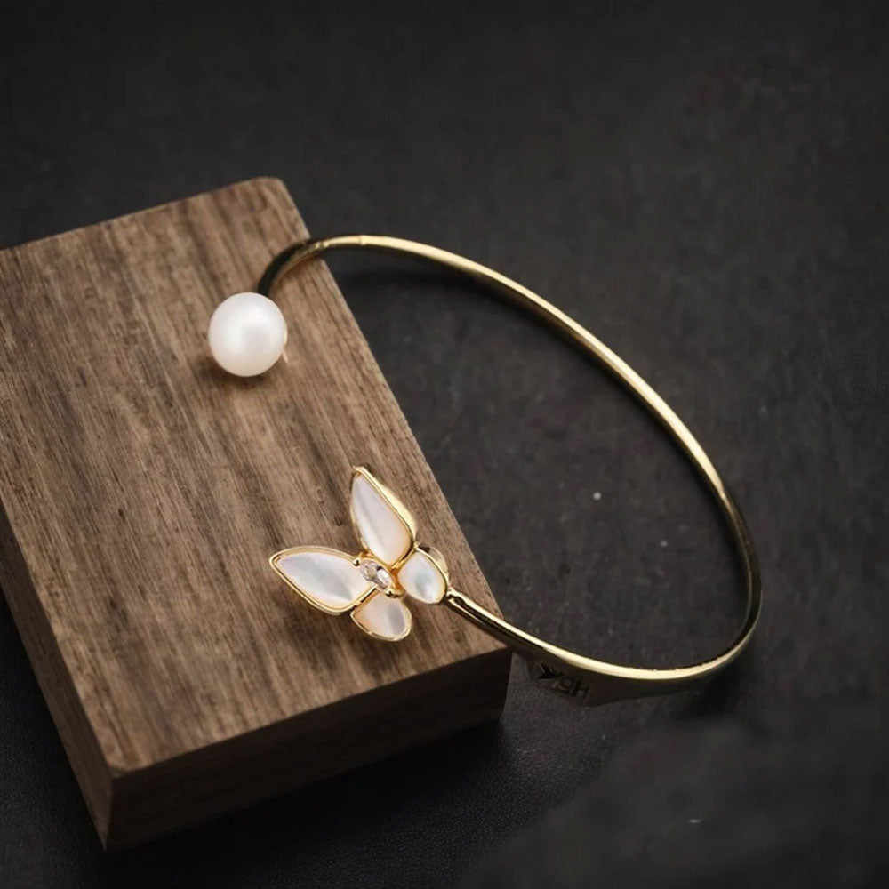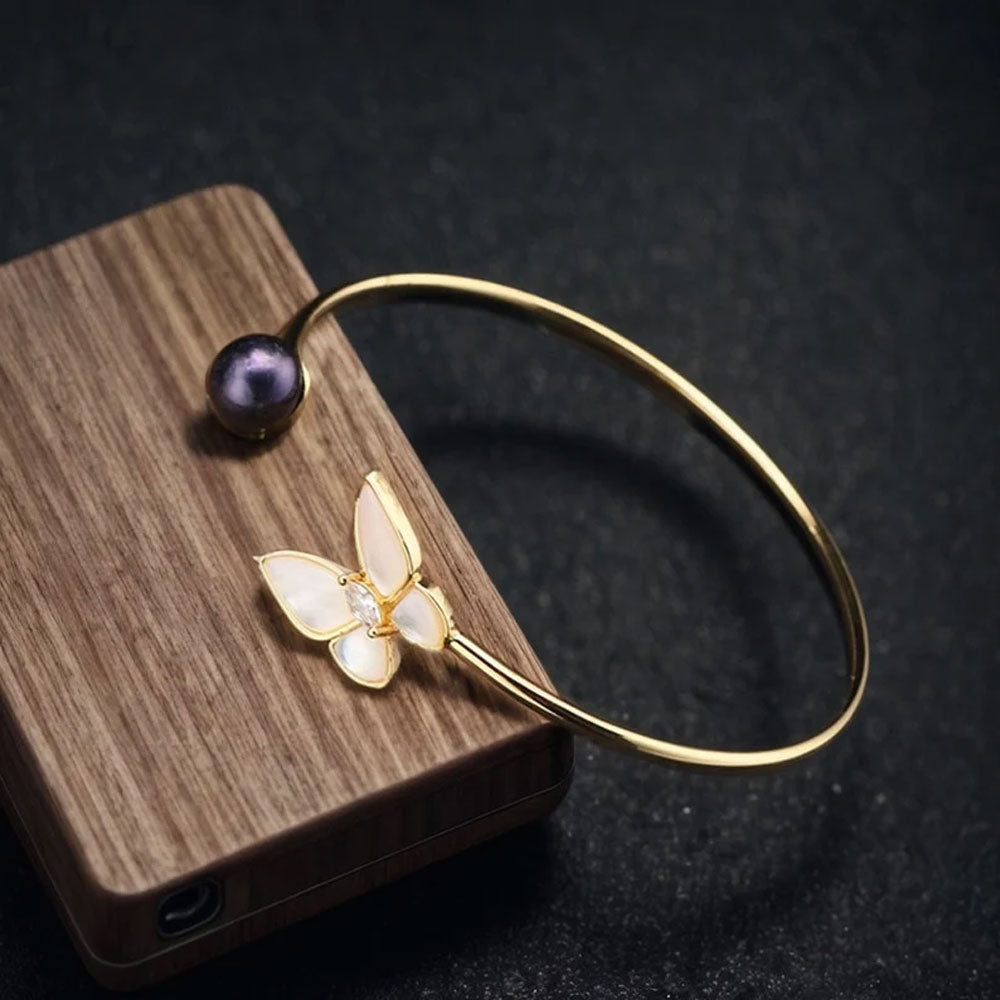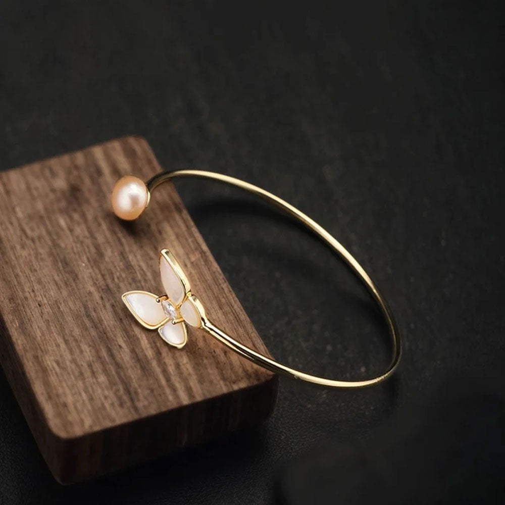 Adjustable Handmade Wire Wrapped Brass Bangle Size 5To12MM Round Shape Pearl Gemstone Bezel Set Bangle For Happy Birthday Gift For Women