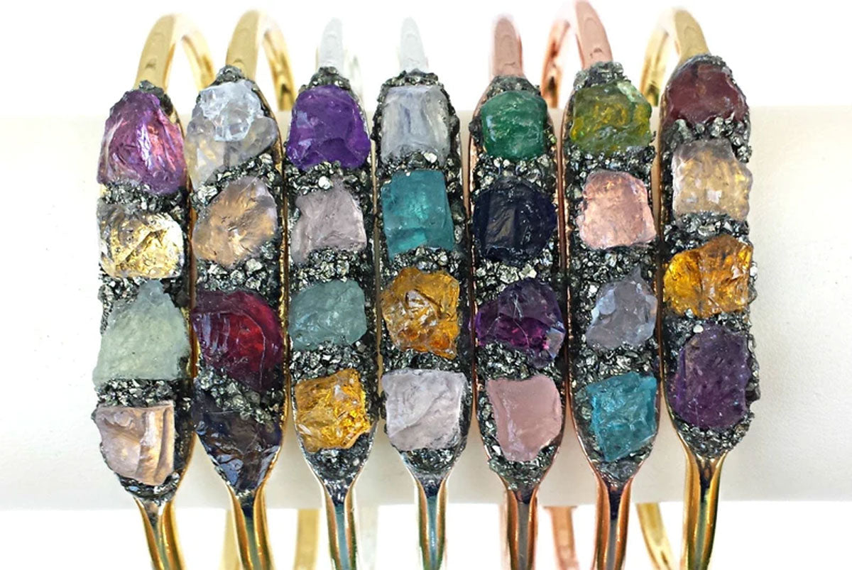Adjustable Handmade Wire Wrapped Brass Bangle Size 10To15MM Raw Shape Multi Hydro Quartz Gemstone Bezel Set Bangle For Happy Birthday Gift For Women