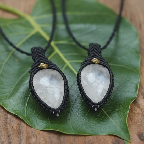Black Moonstone Macrame Necklace - Teardrop Design