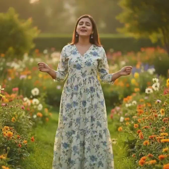 of our elegant black and white geometric floral print maxi dress. Features a tiered design and V-neckline, perfect for garden parties or casual wear.