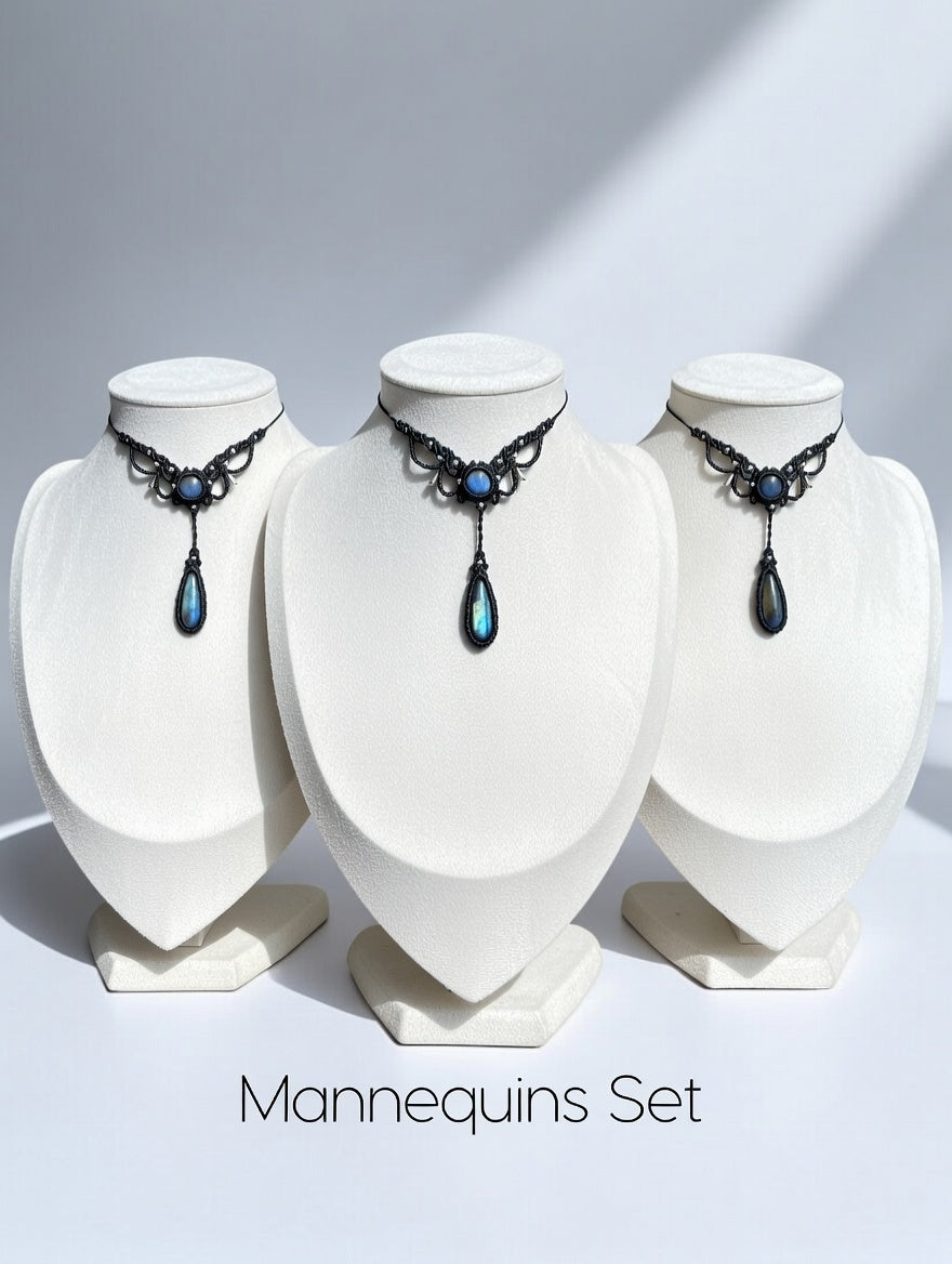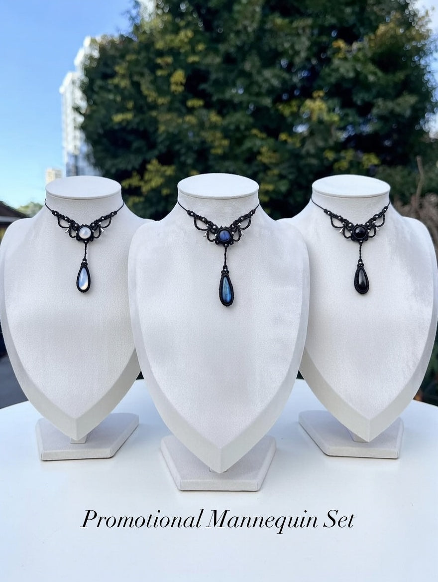 Hariom Creations features a elegant black Y-style macramé necklace with dual Labradorite stones. Sophisticated handcrafted jewelry for evening wear.