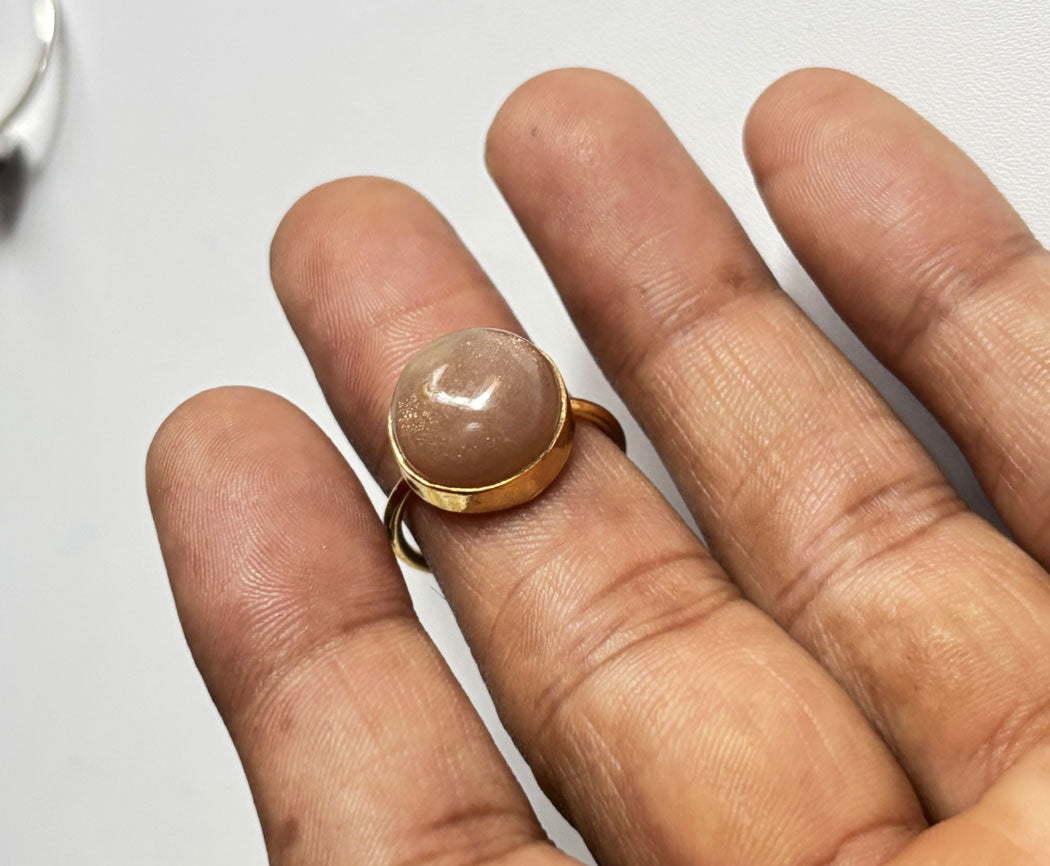 Handmade 925 Sterling Silver Adjustable Rings 12MM Oval Shape Peach Moonstone Gemstone Ring Bezel Setting Ring For Anniversary Gift Ring