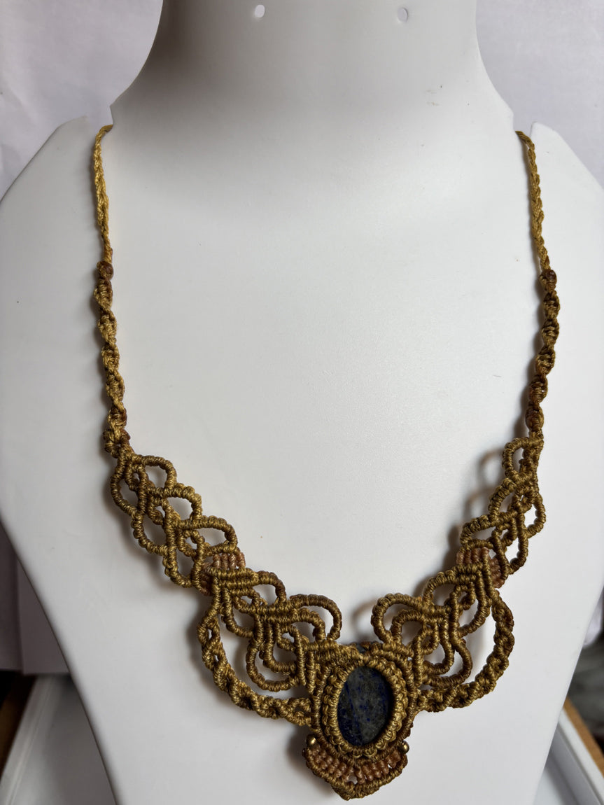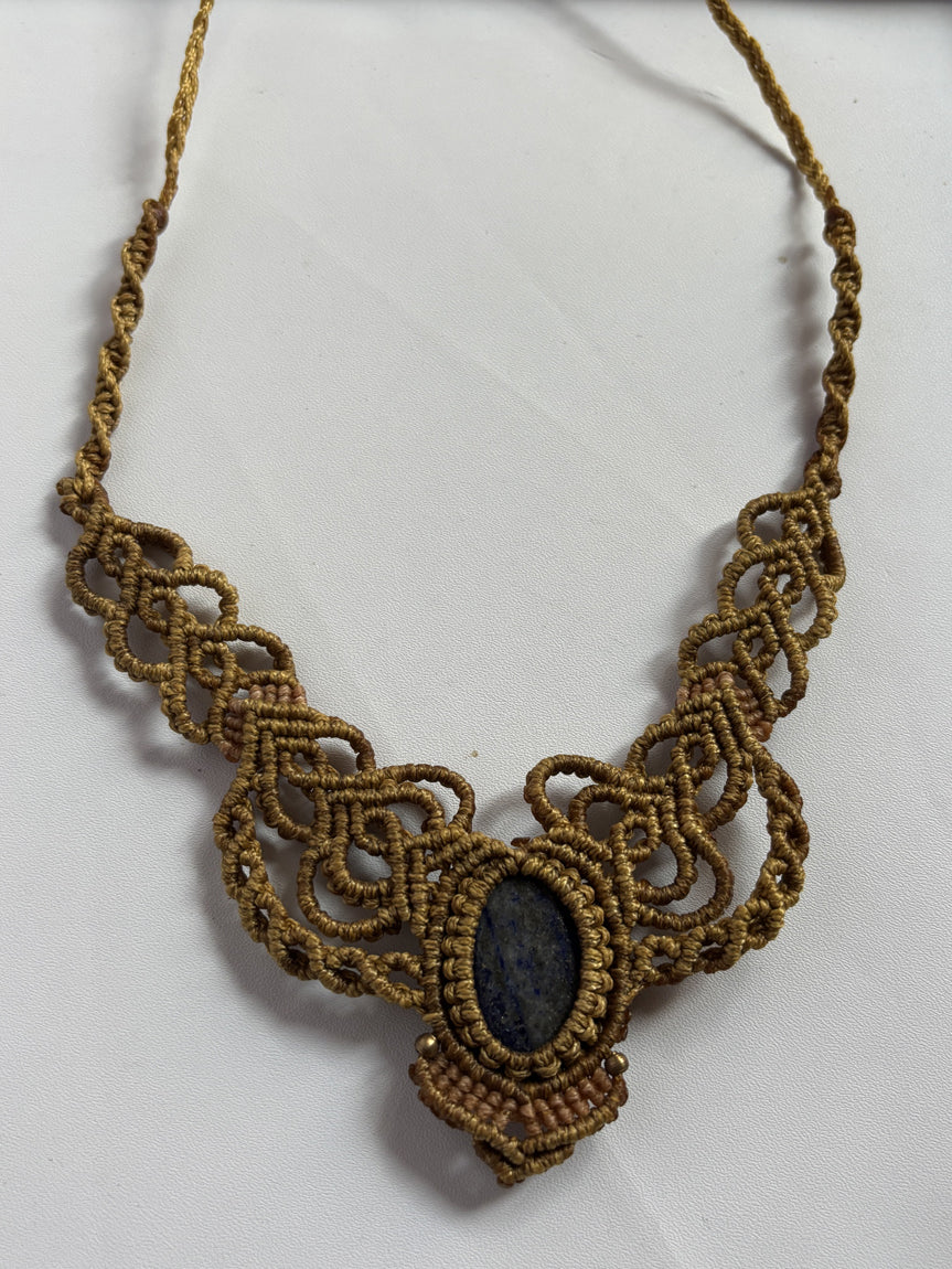 Handmade Macrame Necklace Stone Size 25To30MM Oval Shape Lapis Lazuli Gemstone Green Color Threads Necklace For Women And Girl's Jewelry