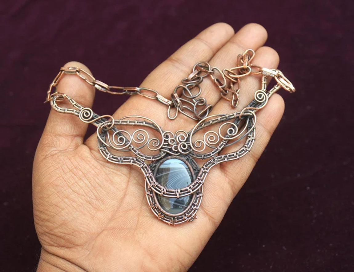 Handmade Wire Wrapped Brass Necklace Stone Size 25To30MM Oval Shape Sardonyx Bezel Set Necklace For Happy Birthday Gift For Women