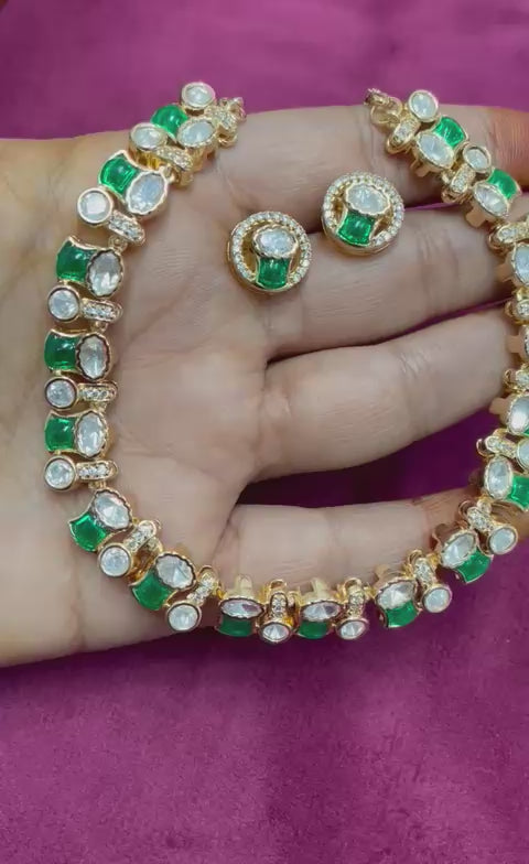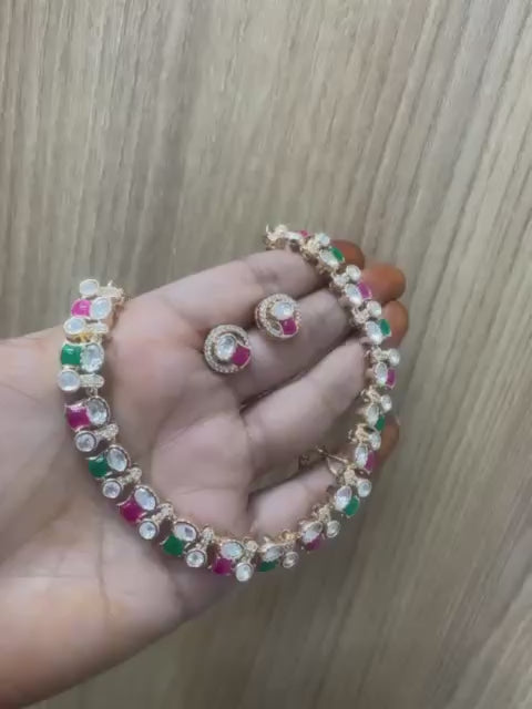 High quality Polki necklace set featuring lab made stones in mixed colors, stone size 5 to 7mm, perfect for bridal and fashion jewelry. for weddings, parties, and gifting.