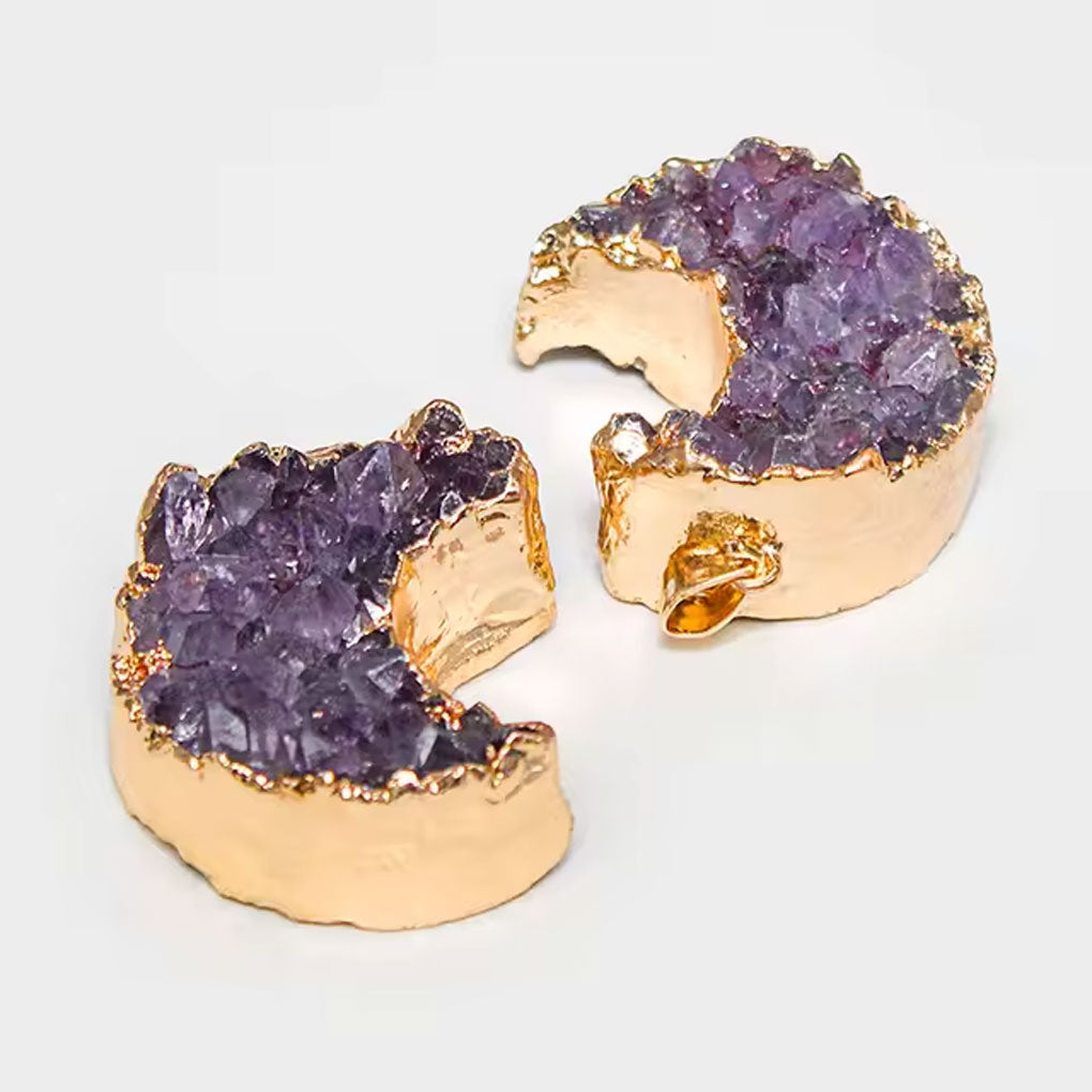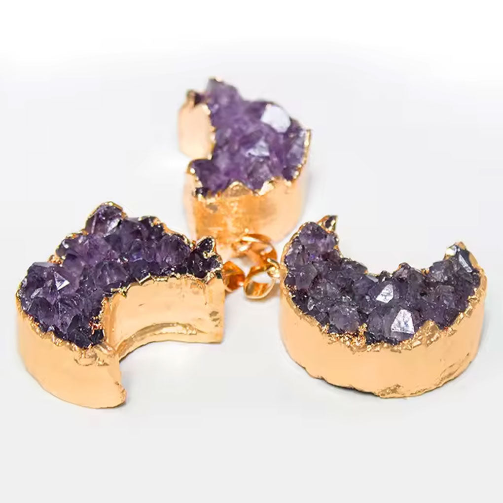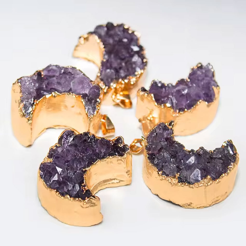 Trendy 2025 925 Sterling Silver Pendant Jewelry 10To25mm Amethyst Raw Gemstone Pendant With Chain Electroplated Set Half Moon Shape For Anniversary Gift's Women or Men Jewelry For Her