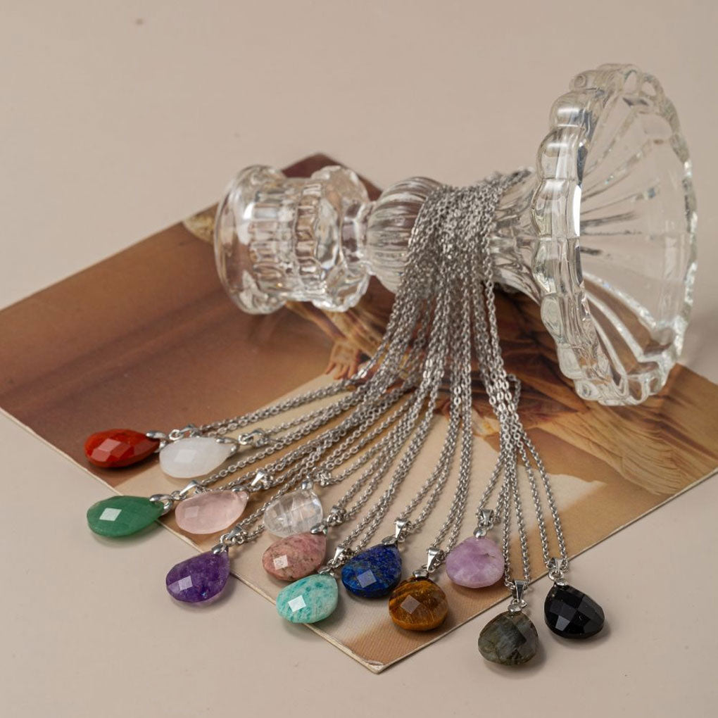 Trendy 2025 9X12mm Drop Shape Multi Color Gemstone Crafted By Hand 925 Sterling Silver Pendant With Chain Necklace Bezel Setting For Anniversary Gift's Women or Men Jewelry