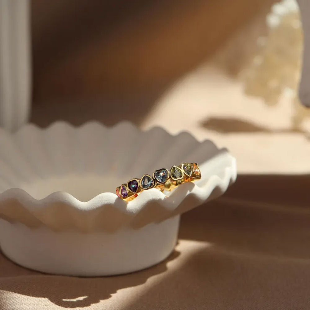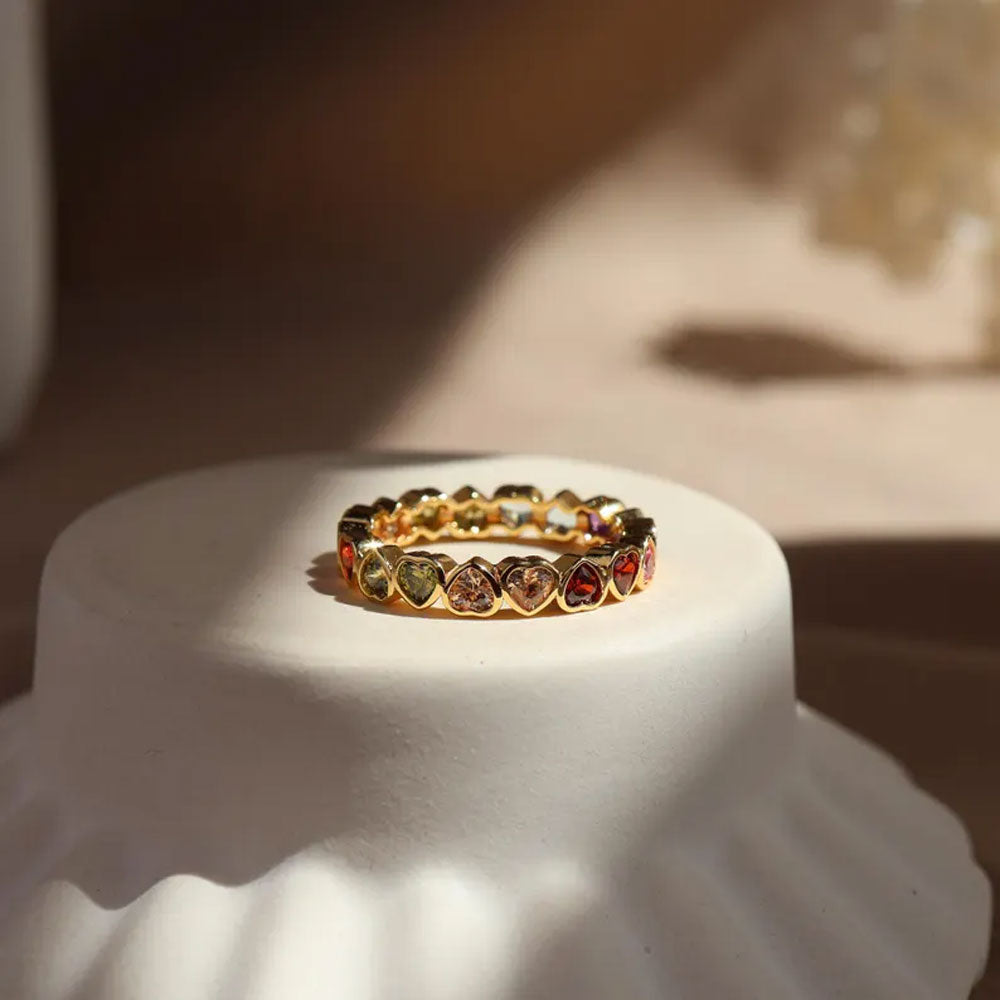 Trendy 925 Sterling Silver Gold Plated Gems Rings 3To5MM Handmade Garnet Quartz Stone Heart Shape Bezel Set Ring For Her Jewelry