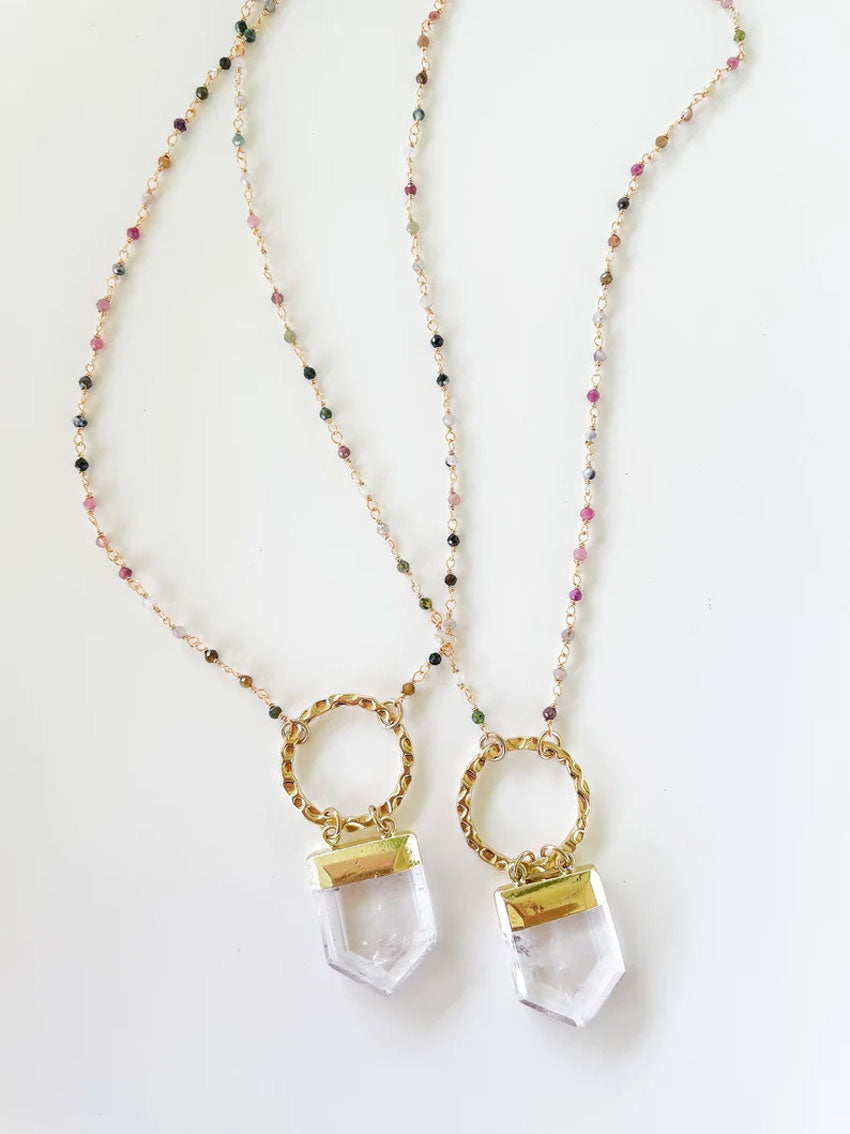 Trendy 925 Sterling Silver Gold Plated Pendant With Chain Necklace Jewelry 8To12mm Double Pointed Pencil Shape Natural Crystal Gemstone Bezel Setting For Anniversary Gift's Women or Men Jewelry For Her